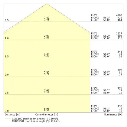 ![]() De kleurcode is een combinatie van de kleurweergave (CRI) en lichtkleur (Kelvin). Het eerste getal is de kleurweergave (1 = zeer slechte kleurweergave, 9 = maximale kleurechtheid). Het tweede en derde cijfer betreft de lichtkleur. Een lamp met kleurcode 830 heeft bijvoorbeeld een goede kleurweergave en straalt een warm wit licht uit (3000K), waar een lamp met de kleurcode 940 een uitstekende CRI heeft en een koel wit licht (4000K) uitstraalt. |