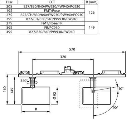 De gradenbundel geeft informatie over hoe breed het licht wordt uitgestraald. Dit zit tussen de 0 en 360 graden (D). Hoe kleiner de hoek, hoe specifieker de lichtbundel is. Over het algemeen is een smalle gradenbundel perfect voor sfeer- of accentverlichting, terwijl een brede gradenbundel ideaal is om grote oppervlaktes te verlichten.